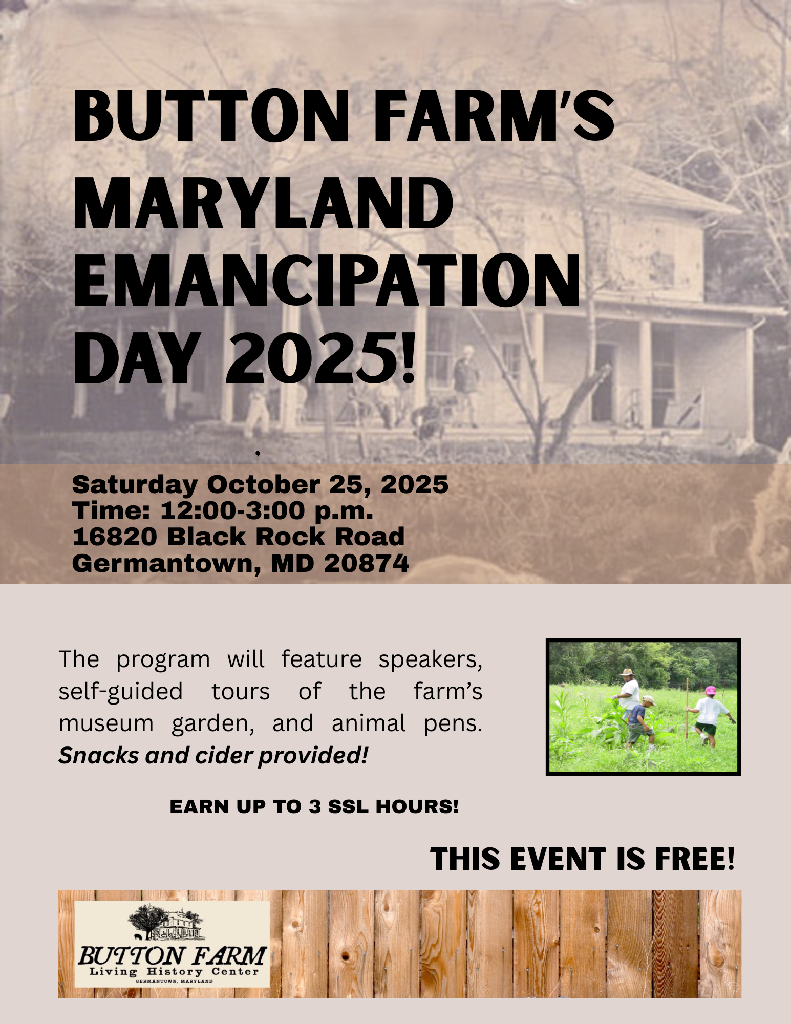 MCPS encourages students and families to visit the Emancipation Day celebration at the Button Farm Living History Center on October 25, 2025, from 12 p.m. - 3 p.m.