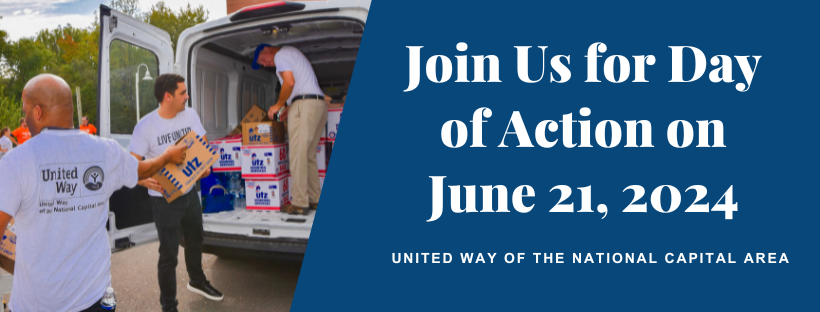 Kick off the official start to summer with an ultimate day of volunteer activities across the National Capital Area! On June 21, United Way of the National Capital Area is hosting volunteers for Day of Action – a global event that mobilizes the caring power of volunteers to create positive change in our own backyard. Day of Action invites volunteers of all ages to rally together around important issues.