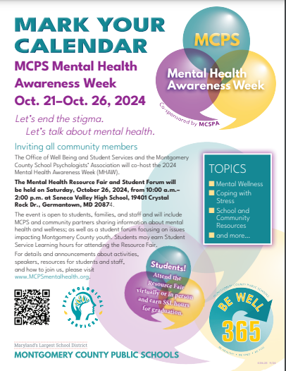 2024 MCPS Mental Health Resource Fair and Student Forum - October 26, 2024 (10am-2pm)